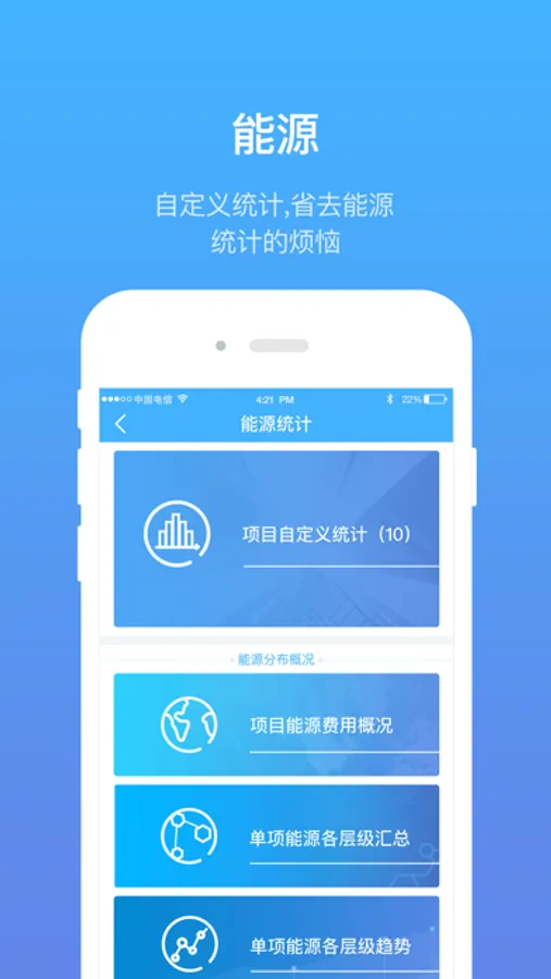 能源模块:实现自动和手动两种抄表方式,自动计算能源费用,结合温度、湿度、预算形成数据分析时时报表,并可自定义统计各层级能耗及费用。