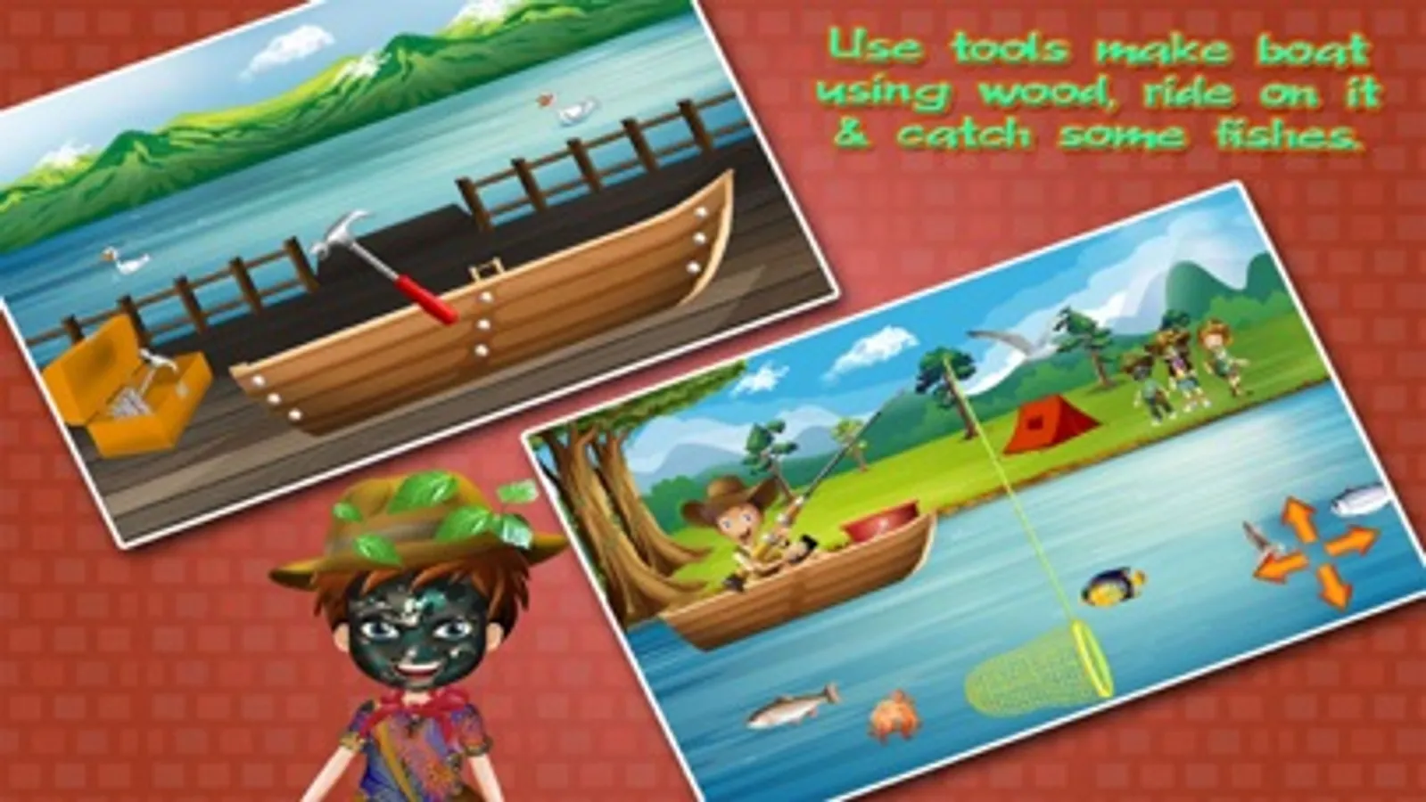 After reaching to the camping spot you will be setting up the tent in the beautiful grassy and pleasant area where the kids will be residing. After setting up the tent you an exciting job to do and that is fishing, you will have the fishing rod and other important equipment for fishing and boat making, you will be using wood logs, nails and hammer to build up the boat in the boat maker level. After building the boat take to the lake and catch some big fishes. After catching fishes to cook and to spend the night in peace you will be setting up the fire using wood and logs. Once the fire lits up. You will be helping the Monna with some cooking, help her barbecue the fish for their dinner outside the summer camp. Take the little kid Jack to the fruits garden where you will be helping him to catch the fresh farm fruits for the dinner. Arrange the table and serve the family with the delicious food and barbecue. Let them have a good night's sleep.