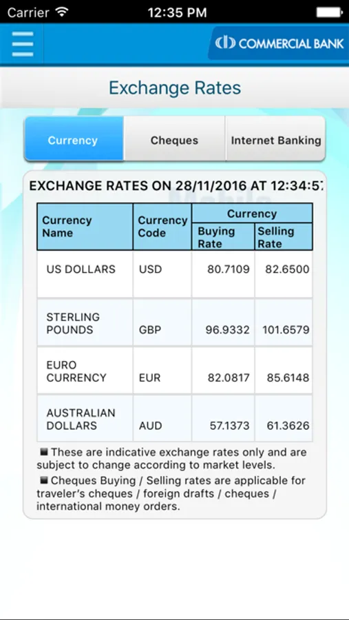 Clients would login to the new application via the existing user credentials and could enjoy almost all the functions available under e-Banking web services including Bill payments, Credit card management, Fund transfers. Inquires on Account details, Fixed deposits , Loan & Treasury bills are also included in the menu offered. ATM & Branch locator, Exchange rates & Interest rates are the new value additions to the downloadable application and branch expects that those would meet most of the user requirements.