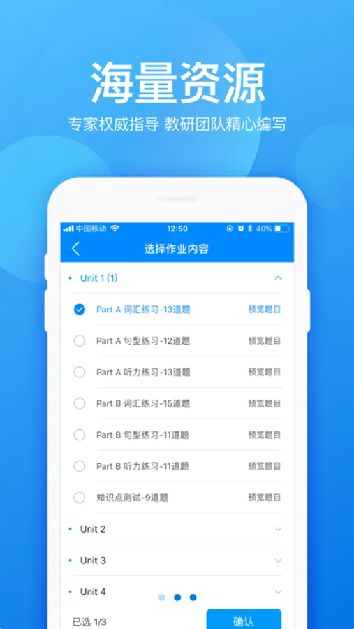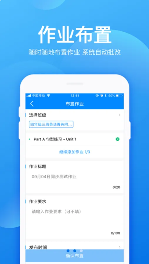 3、作业布置:支持单词、同步测试、口语、绘本、配音等作业布置。