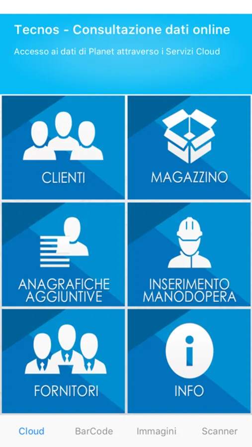 L’app Tecnos Cloud permette di consultare direttamente dal telefono le anagrafiche clienti, fornitori e magazzino, consente inoltre di inserire rapportini giornalieri imputando le ore di manodopera e i materiali utilizzati ad una commessa aperta, ad un intervento o senza indicazione.