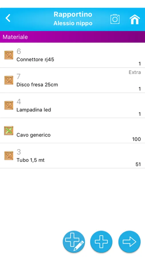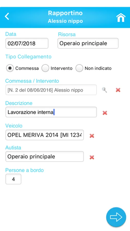 All’interno del rapportino, si possono indicare note riguardanti il lavoro e le ore eseguite, specificare il veicolo utilizzato e l'autista. L’operatore che sta compilando il rapportino ha la possibilità di cambiare l’operaio o la risorsa, inoltre nel rapportino è possibile marcare il materiale come extra preventivo e inserire un articolo immettendo solo una descrizione dello stesso.