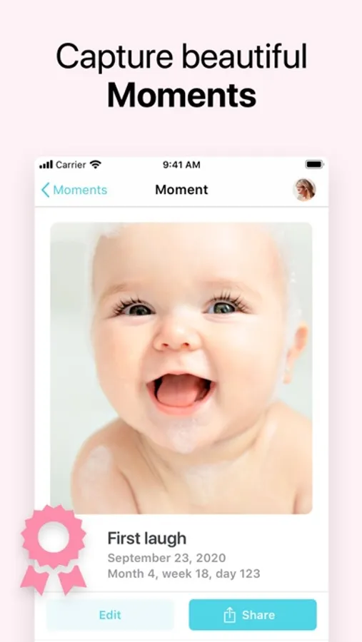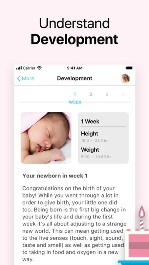 • Add your baby’s name & photo to make your baby’s development tracker more personal