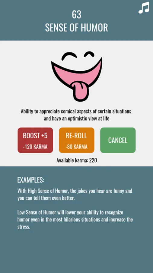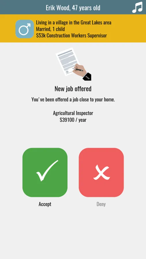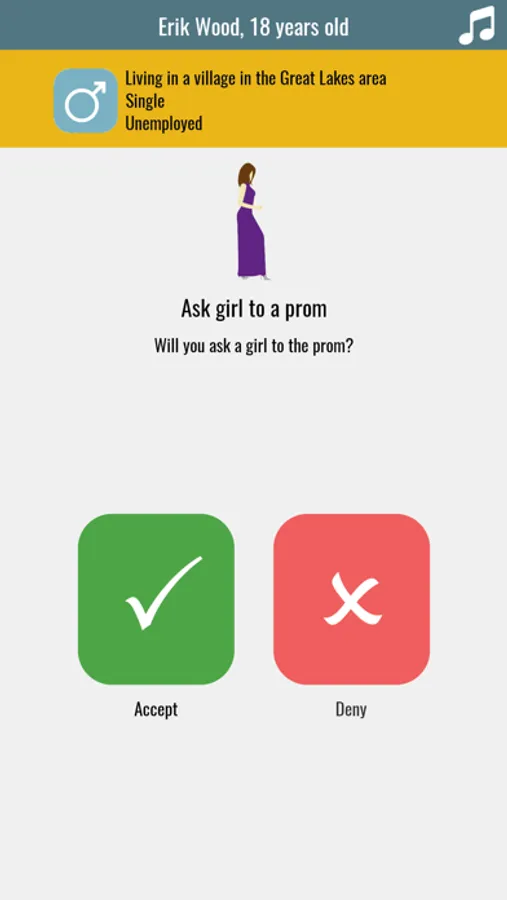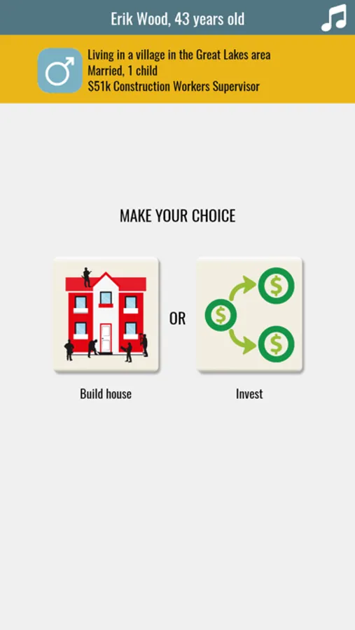 • choose between two options for each year of your life in a specifically designed graphic mode and build your life path
