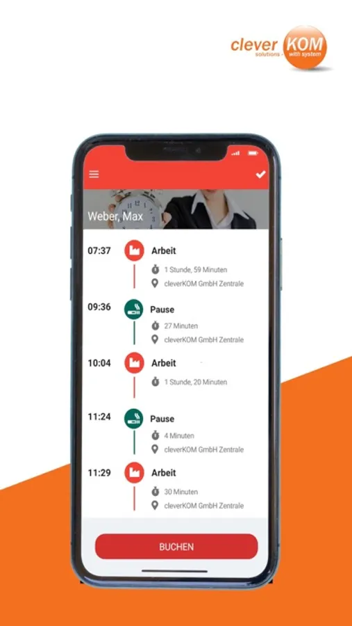 Mit cleverTIME erfassen Ihre Mitarbeiter ihre Arbeitszeiten so schnell und einfach, dass es sogar Spaß macht.