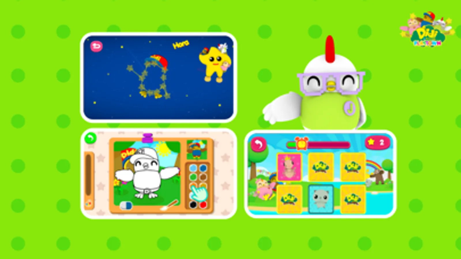 Didi & Friends Playtown is a combination of 12 games based on the popular Didi & Friends children songs. Each song has an interesting game concept and a different approach.