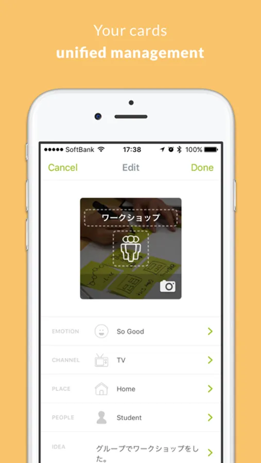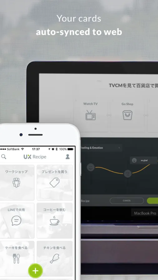 UX Recipe is an application that allows you to record your daily events or usage of services (Touchpoints) by tacking a picture and attaching an icon to it, like a lifelog. You can record and name a memo which includes the channel or media where you saw something as well as the places or persons involved. At any time, you can look back on your past actions or personal experiences after recording them with this application. Moreover, you can produce your own original story by linking this application to other Web services.