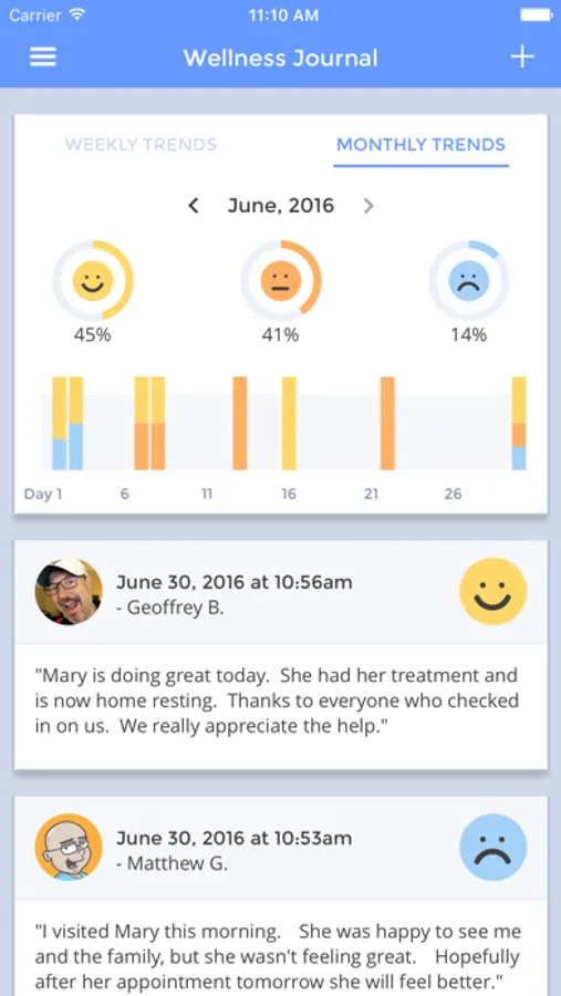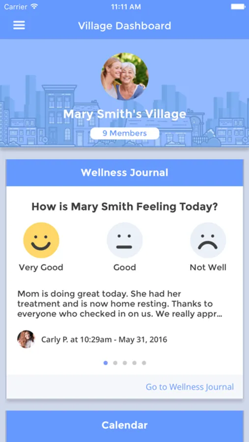 • Wellness Journal: Keep your village updated or check in on the day-to-day status of your loved one