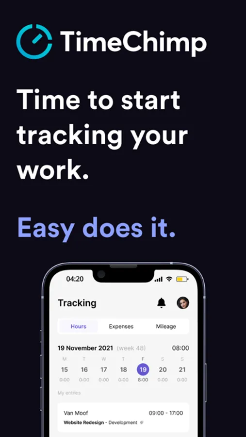 Time tracking doesn’t have to be a burden. Feel like you’re always busy but not productive? Start tracking with TimeChimp. Track your workday with just a few taps on your smartphone. All entries are safely stored and accessible wherever you are. Easy does it.
