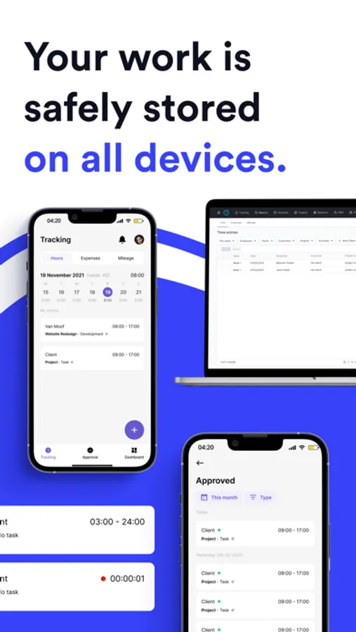 - Approval: Submit your hours for approval and see which hours are pending, approved or rejected.