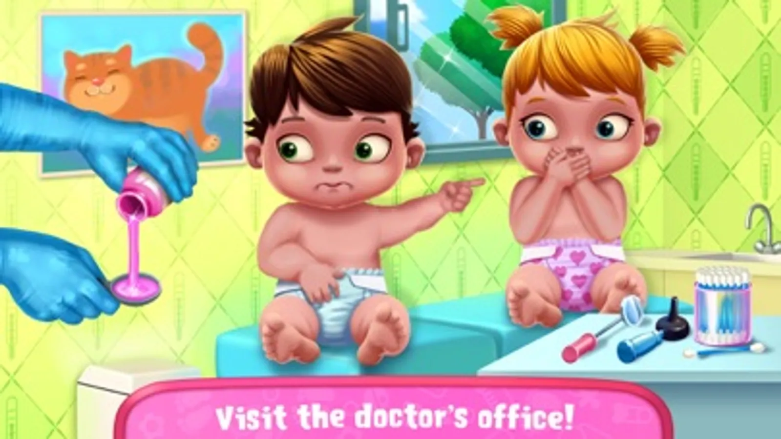 > Doctor time - check your twins’ throats, give them medicine & help them feel better!