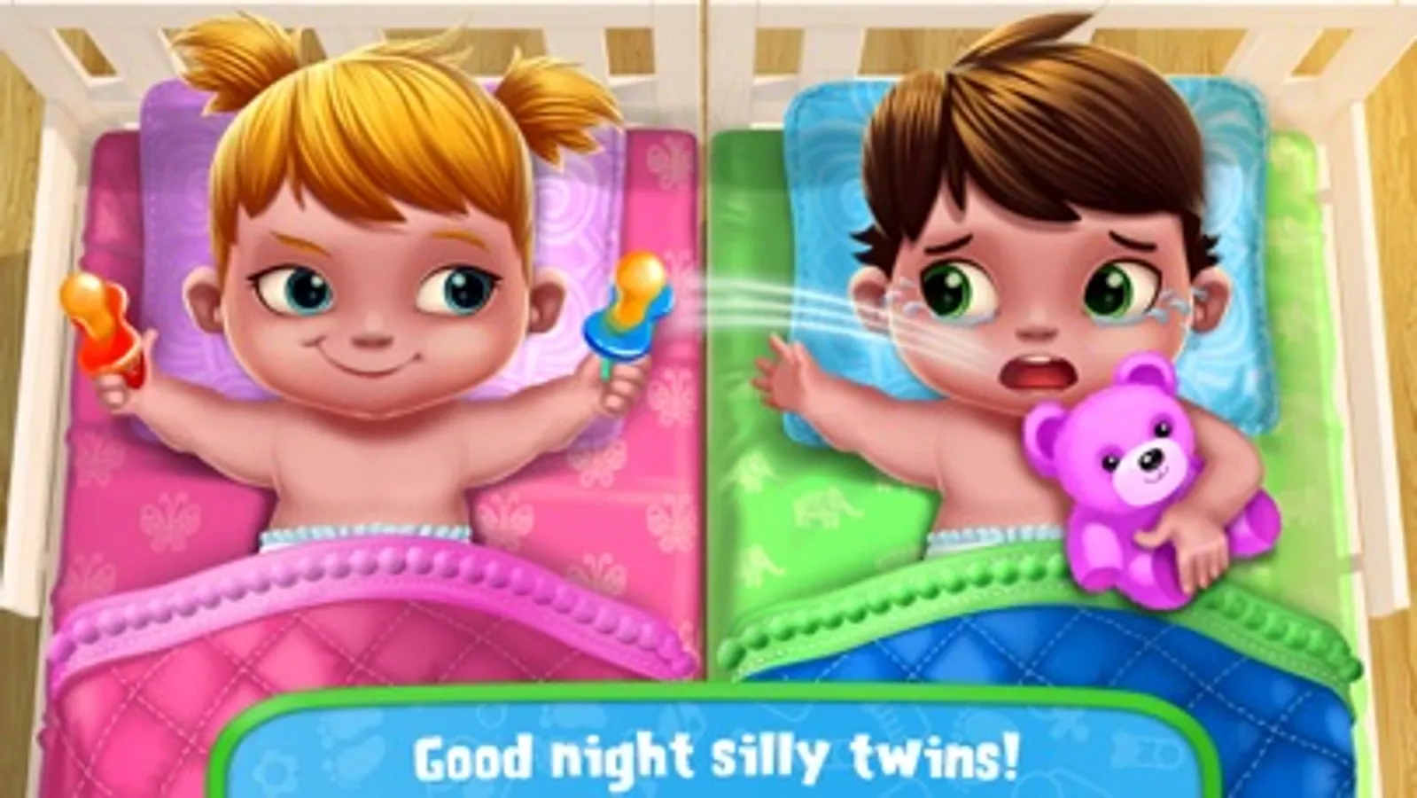 > Tuck your twins into bed - good night, silly twins!