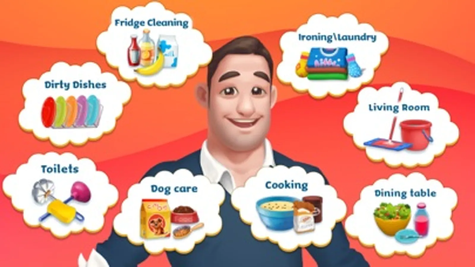 Uh oh, this house is a mess! Can you help Daddy organize the house before Mommy comes home? Do the laundry, wash the dirty dishes, scrub the messy toilet & more! Don’t forget to leave Mommy a loving note on the fridge! Helping around the house is pretty crazy (especially when Mommy's not home!)