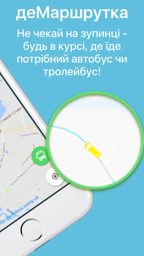 - З додатком деМаршрутка Ви в будь-який момент будете бачити де саме їде Ваш автобус/маршрутка/тролейбус на карті.