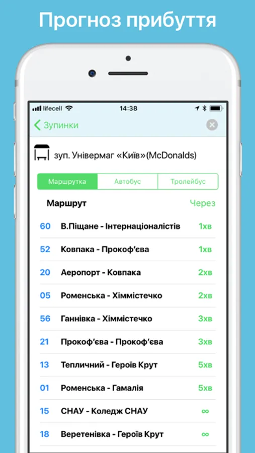 - На зупинках є прогнозування прибуття - просто обирай свою зупинку, та побач через скільки хвилин приїде потрібний автобус/маршрутка/тролейбус.
