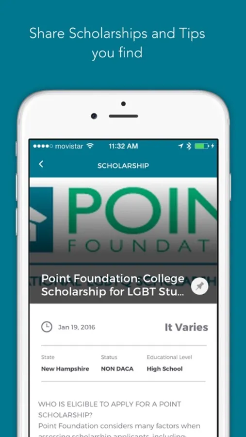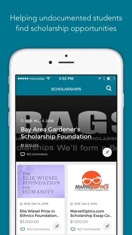 DREAMer's Roadmap is a mobile app designed to help DREAMer’s -undocumented students- find and track scholarship opportunities available for them across the nation. The app will also work as a crowd sourcing platform where anyone can suggest a scholarship they know about that are not on our data base. DREAMers Roadmap will also be a great resource for educators, making it easy to share our information via email and social media with their students.
