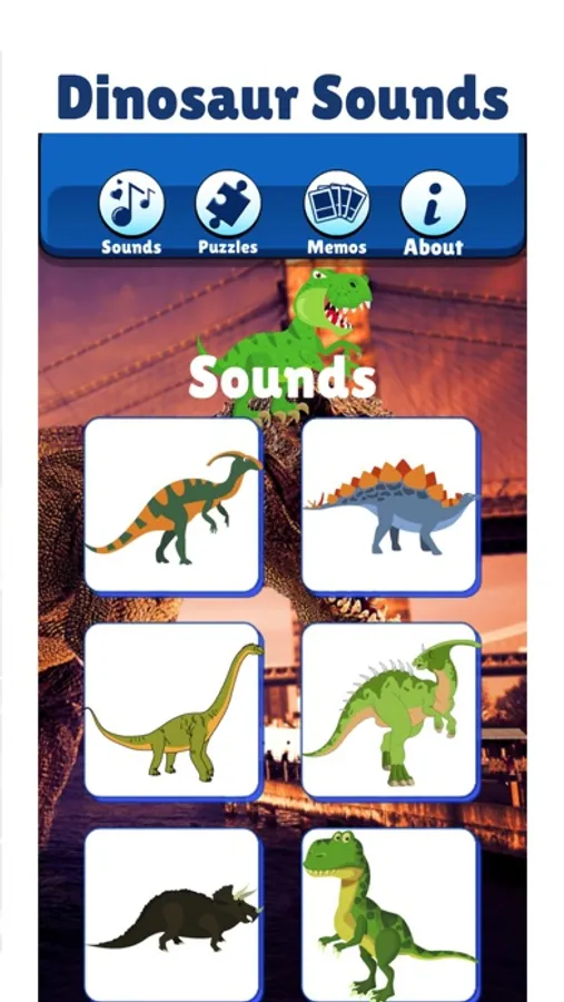 - Real, high quality sounds of tyrannosaurus, raptor, and other dinos