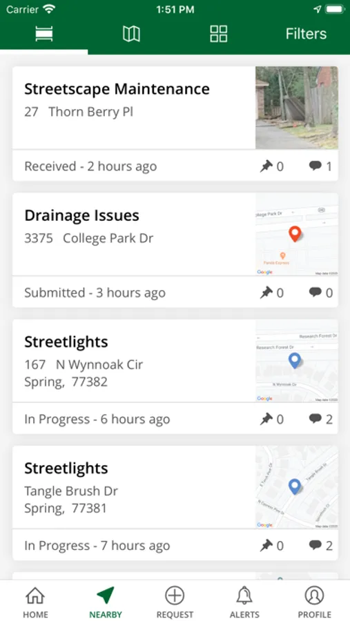 TheWoodlands311 is a free, easy-to-use platform for community members to stay in touch with The Woodlands Township. Service requests, such as reporting broken streetlights, are easily submitted by completing a short description of the issue. Attach a photo or let your phone record the exact location to help us pinpoint the problem. Requests will be routed to the appropriate department for proper handling. Residents will be able to track the progress of their requests on the Township website and through the mobile application. The Woodlands Township looks forward to serving you!