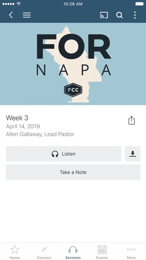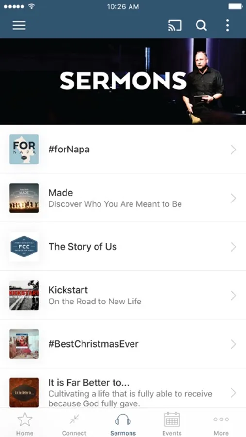 The First Christian Church of Napa app was developed with Subsplash App Platform.