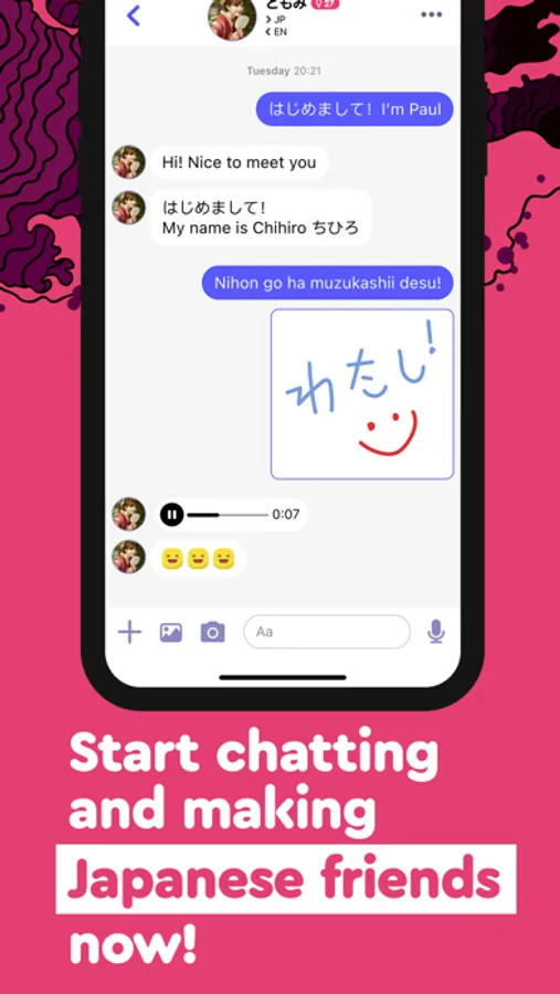 • Practice your writing. Using the drawing tool in the chat, you can exchange hand writings and improve your kanji and kana skills! (But you can also only send cute drawings if you prefer ;-)