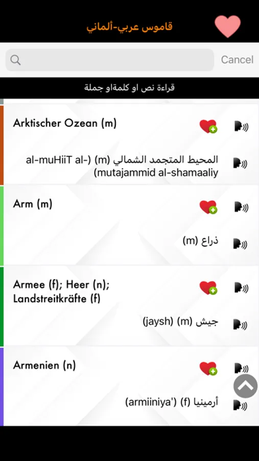 القاموس العربي تطبيق يسمح لك بترجمة الكلمات من اللغة العربية إلى الألمانية وبالعكس دون الحاجة للاتصال بالإنترنت ومجانًا