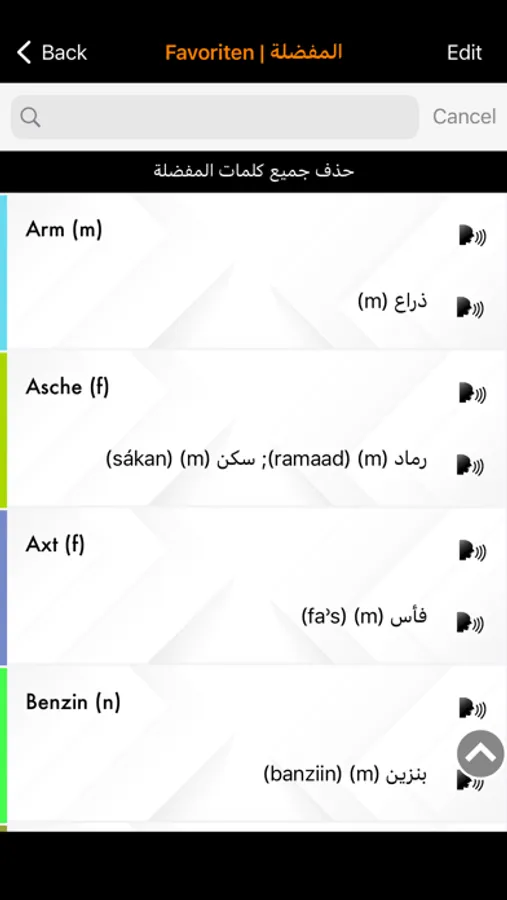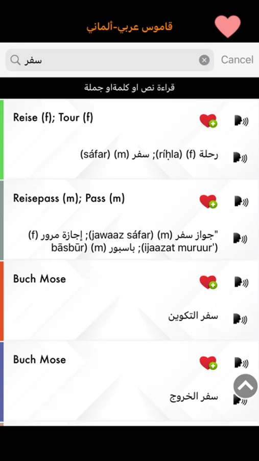 - خاصية قراءة ترجمة الكلمات باللغة العربية والالمانية