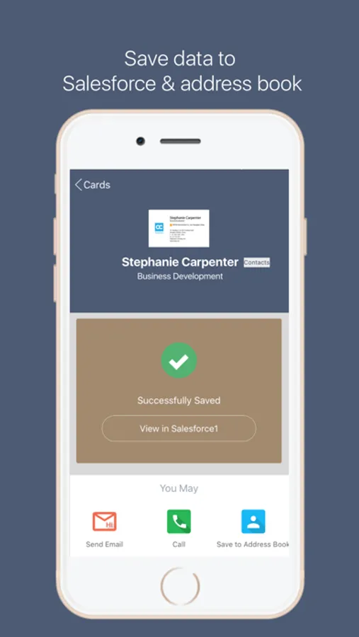 • Scan cards offline and auto save to Salesforce when mobile gets connected to a network
