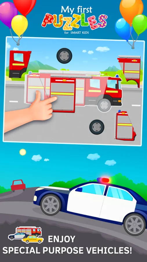 - Special Purpose Vehicles. If the child likes to play policemen or firefighters then these puzzles are right for them! Here kids can assemble police car, fire truck puzzles toddlers, ambulance car and also taxi and even a SWAT car!