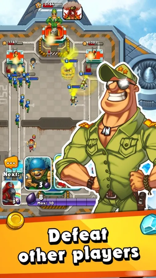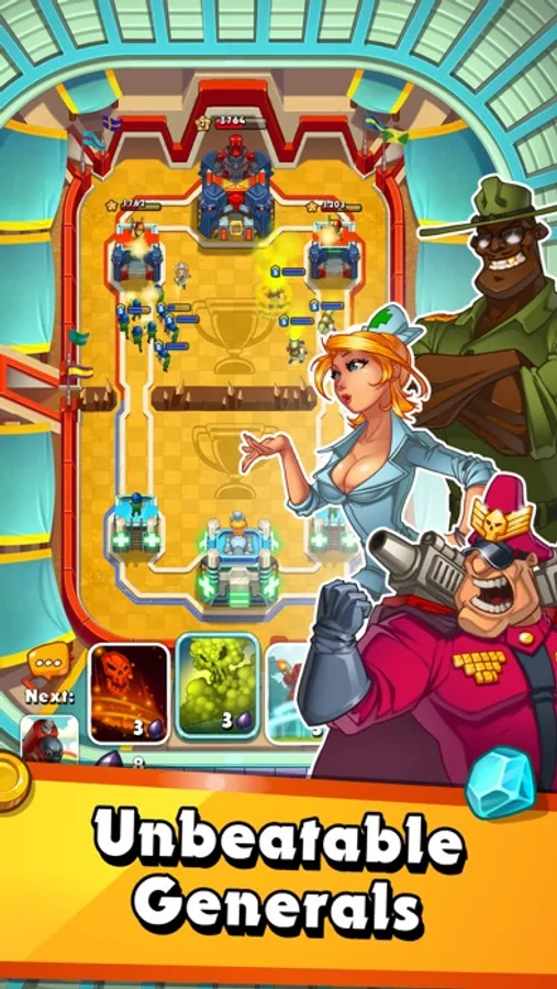 Drive your fighters to conquer enemy Towers, make a good use of your devastating armored vehicles and bring your General’s defense to the maximum level.