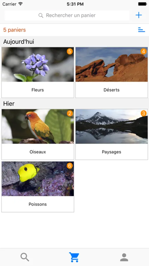 Les paniers sont également au rendez-vous. Retrouvez toutes vos sélections existantes ou créez-en de nouvelles ! Les paniers partagés par d'autres utilisateurs sont également disponibles.
