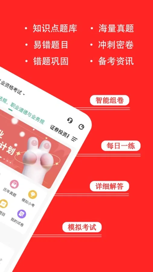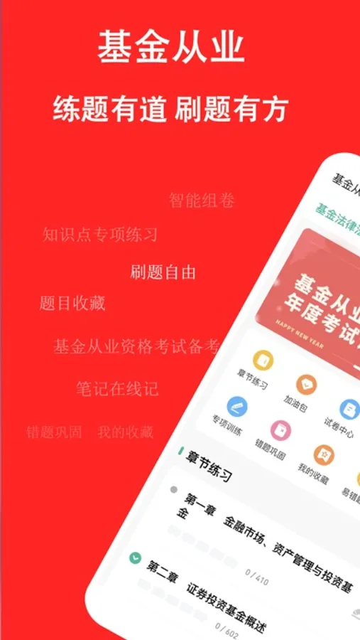 基金从业资格考试题库是考生专用的实现科目练习和模拟考试的手机端APP软件,集智能辅导、详细解析和考试考情于一身,涵盖该考试热点、难点和常考点,有基金从业资格考试的各个科目的历年真题集、模拟试题题集、章节练习,提供基金从业资格考试备考刷题练习,包括题库中的试题、模拟考试等功能,是各位考生学习备考的帮手。
