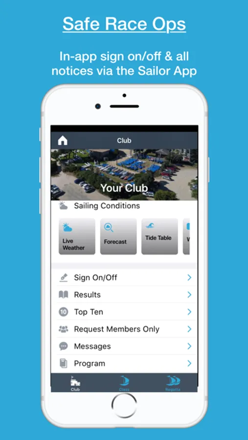 Clubs can keep sailors updated with real-time racing information and reminders for social events via the message function.