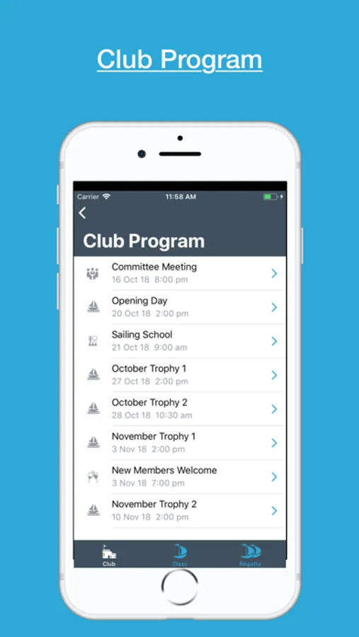Clubs subscribed to MySailingClub.com.au can provide their members and visitors with access to their program of events and booking details directly on the member's phone.