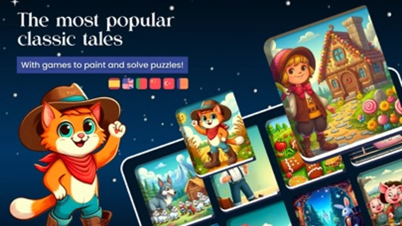 It´s an app of classic collection of short stories, undoubtedly the best interactive book with audios of story reading, educational games of coloring pages and jigsaw puzzles.
