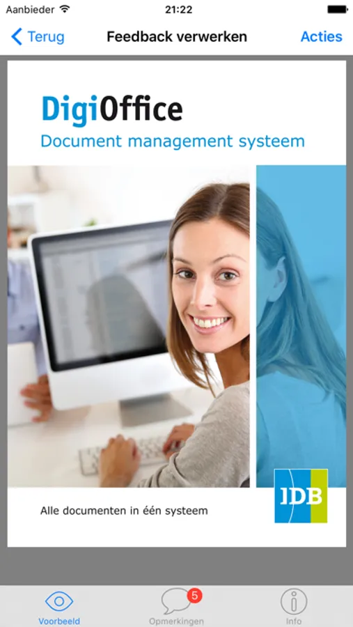 Met de DigiOffice DMS App heeft u de vrijheid om online snel en gemakkelijk documenttaken af te handelen. Denkt u hierbij bijvoorbeeld aan het goed- of afkeuren van inkoopfacturen en het lezen, controleren en geven van feedback op documenten. De DigiOffice DMS App maakt hiervoor verbinding met uw eigen DigiOffice omgeving en geeft direct toegang tot uw openstaande documenttaken.
