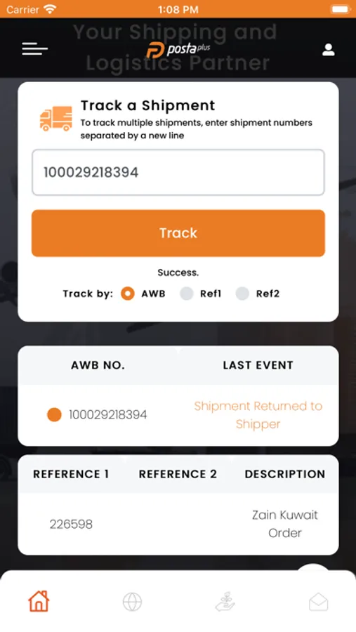 - Track shipments status of the inbound and outbound shipments by AWB number using mobile app