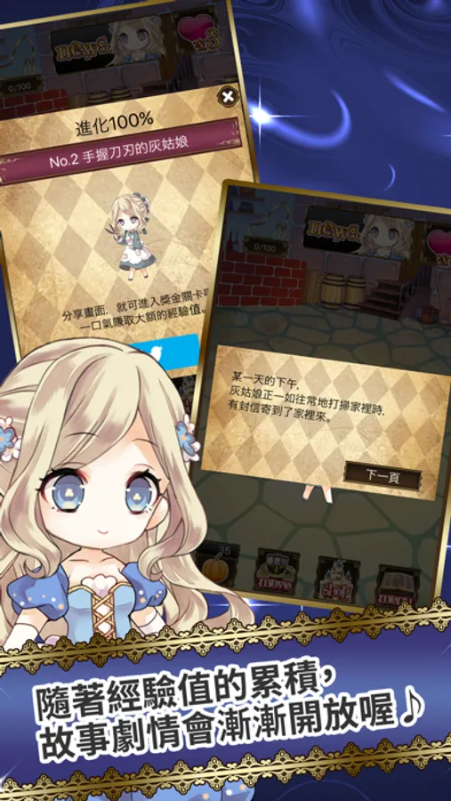 遊戲中您將操縱灰姑娘來取得經驗值,