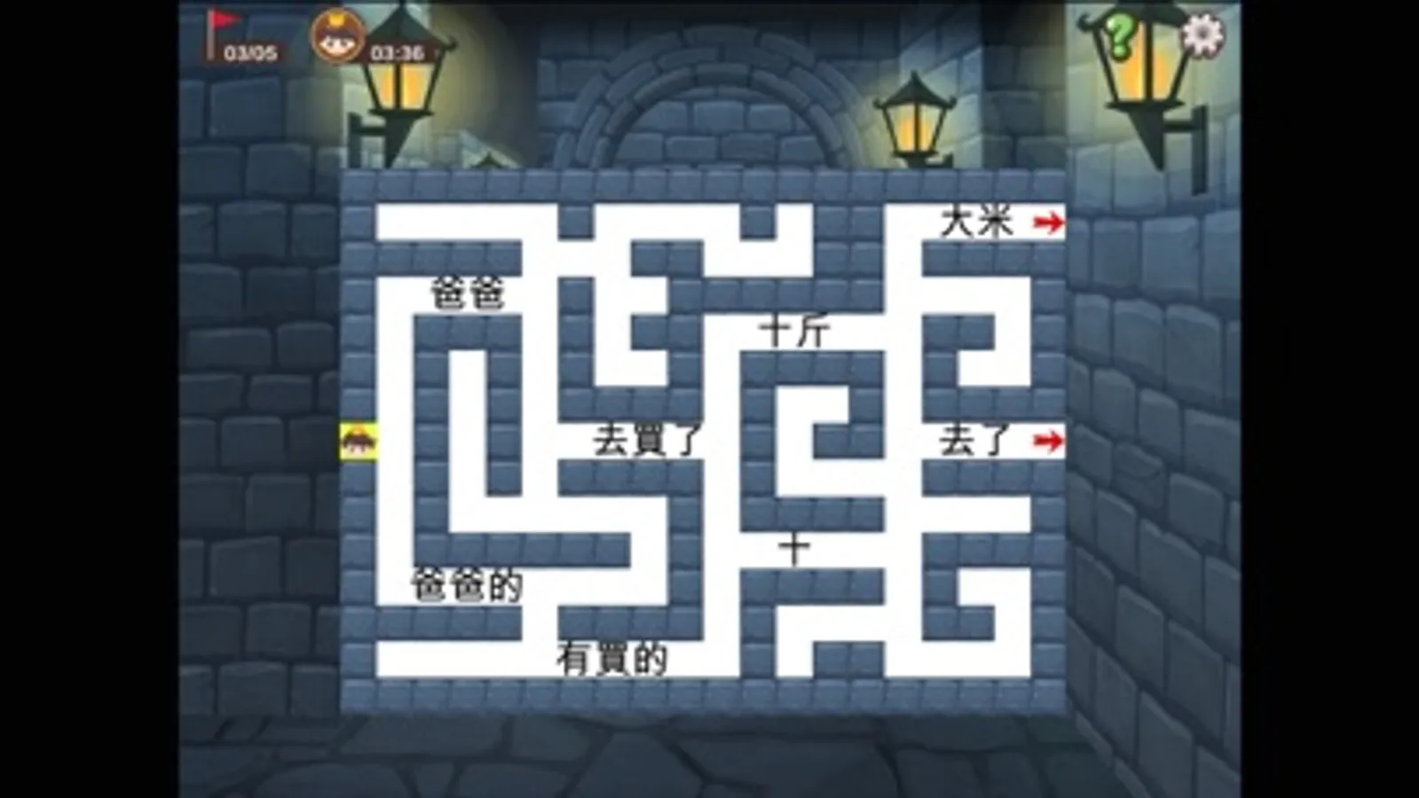 拖曳出能把句段組成有完整意義的句子,到達迷宮的正確出口