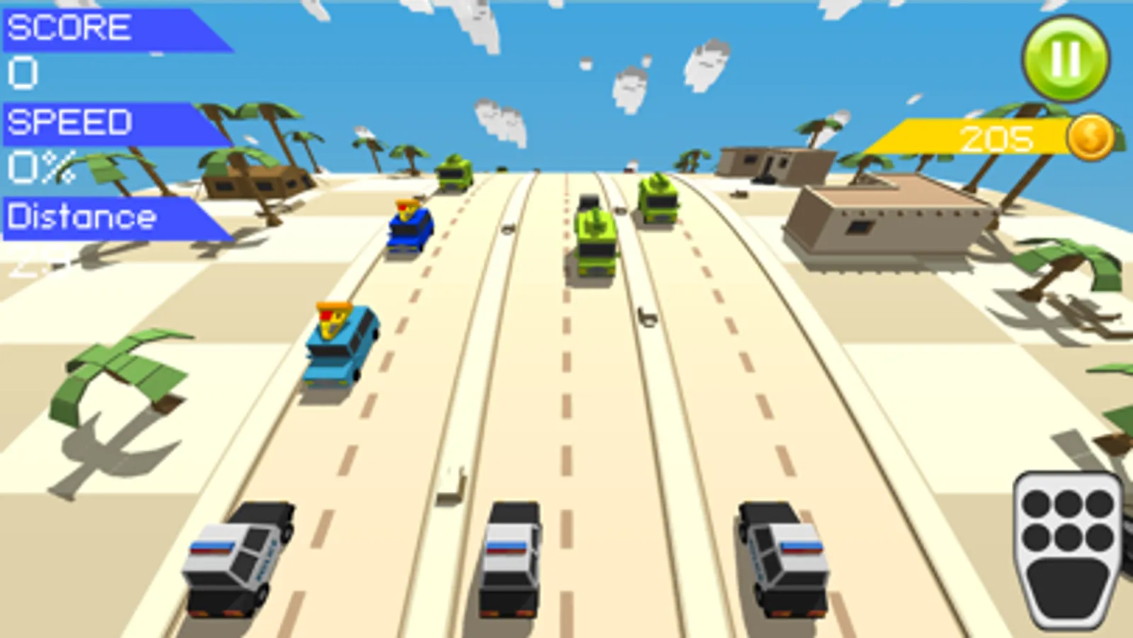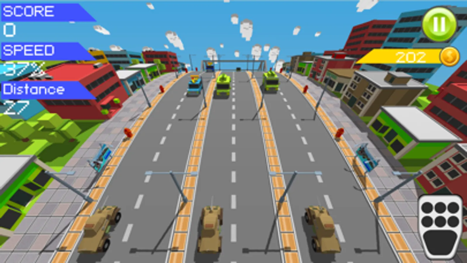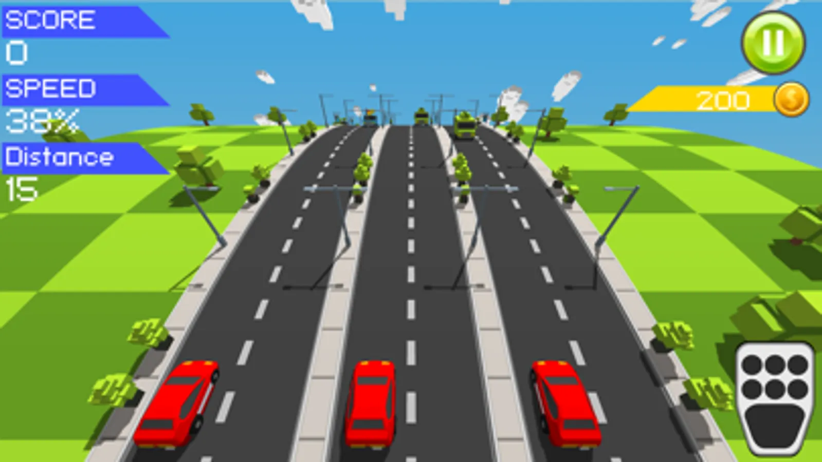 Curvy Road is game where you drive three cars ahead at the same time. Dodge traffic, avoid crashing and you will be the best racer. Easy to play. Tap screen to switch lanes. Collect coins, open prize boxes to get new cars. Drive at full speed to get more score. Master and unlock all 22 vehicles from sport car to tanks and airborne vehicles. Drive vehicles along the asphalt or use airborne vehicles. Race through country, city and desert.