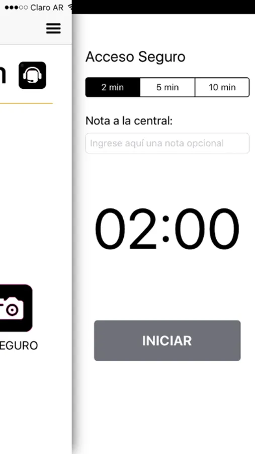 ACCESO SEGURO. POLICE SECURITY incluye esta funcionalidad que brinda tranquilidad y seguridad en situaciones de riesgo potencial, como son el acceso a su domicilio, parking o empresa, o cualquier situación de inseguridad temporal. Al iniciar el proceso de acceso al domicilio se establece un tiempo prudencial para esta acción (de 2, 5 o 10 minutos). Vencido este tiempo, si el cliente NO confirma el acceso, AUTOMÁTICAMENTE POLICE SECURITY genera una alerta para el operador de la Central de Monitoreo.