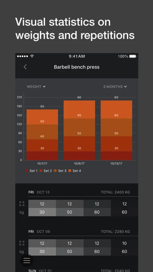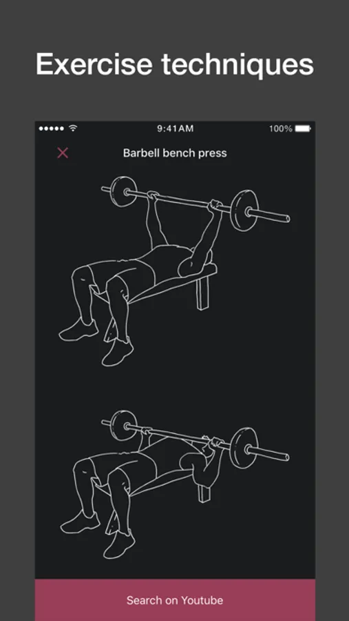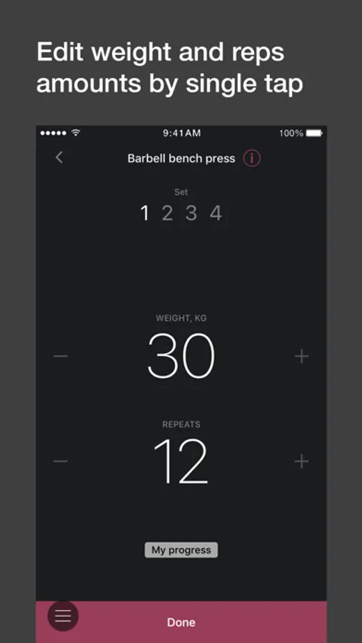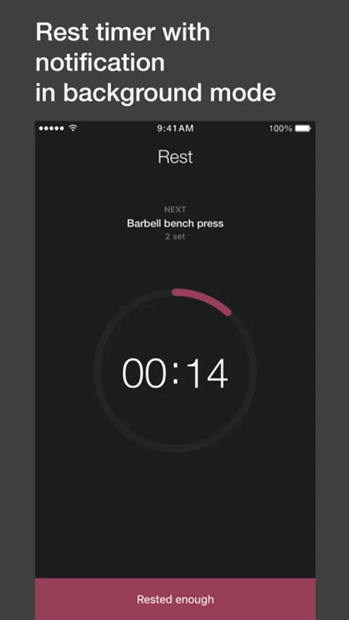 • Rest timer between sets can work in background mode and notify when it’s time to do the next set.