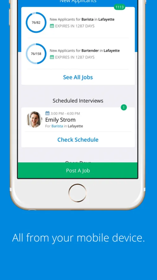 Because you work in hospitality, you're not always near your computer, which is why we created the Harri Hire™ mobile app.