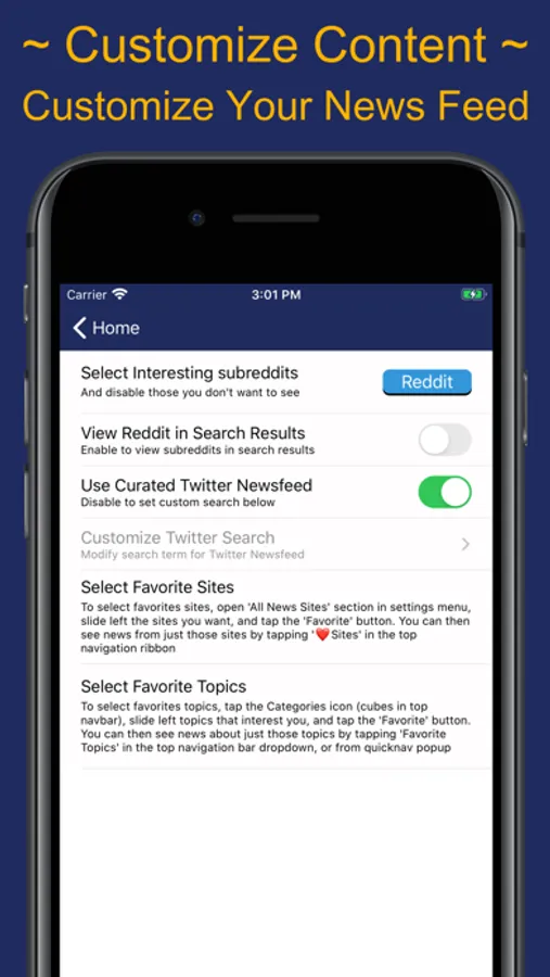- View relevant news from Twitter as well (Curated list or Customizable search)