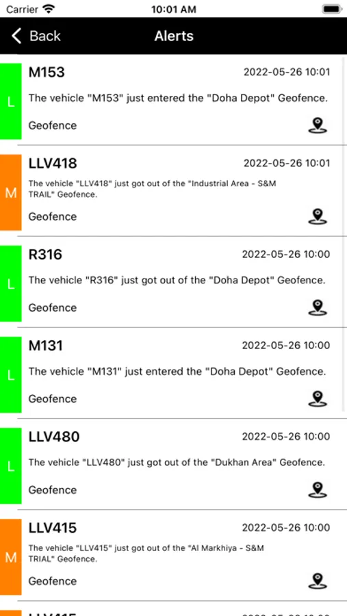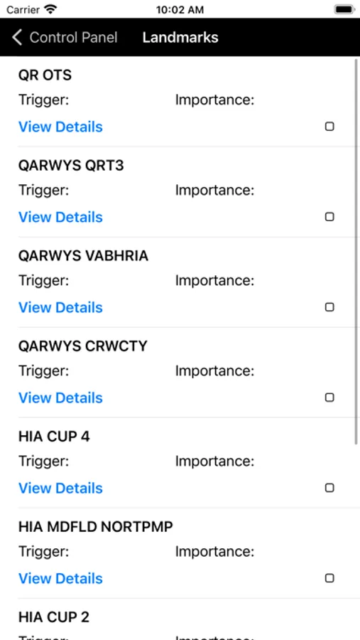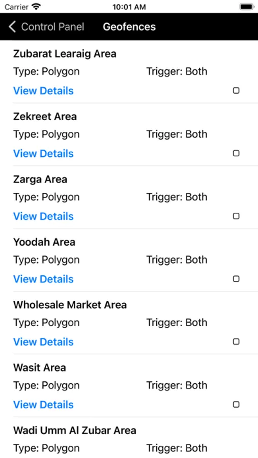 - View a list of Landmarks, Points Of Interest and Geo-fences.