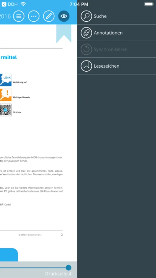 With the electronic table of contents and intelligent, rapid search, you can find your way easily around all Swissmechanic publications. You tap on a word in the teaching materials and with just one click you obtain search results direct in the teaching materials or online, as you wish.