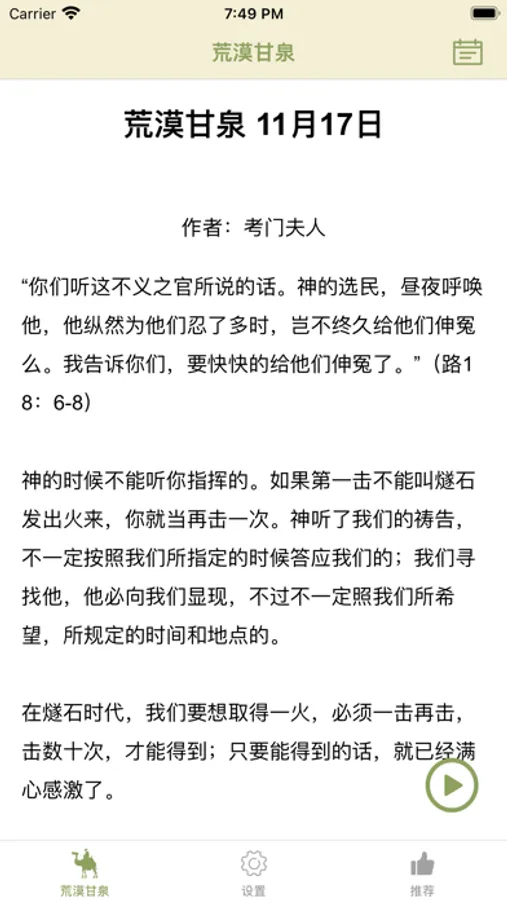 20世纪初期,作者的丈夫考门先生因心脏病而倍受煎熬,夫妇二人一直相互支撑,凭借虔诚的信仰和巨大的毅力一次次渡过生命难关。《荒漠甘泉》与《黑门山路》记录的便是他们在这个艰难时期的心灵感悟和真实体验。《荒漠甘泉》详细记录了作者一年当中每一天的生活感悟,组成365篇短小隽永,鼓舞安慰的文章。内容主要涉及苦难、忍耐、信念、爱心、安慰、反省、坚强等。