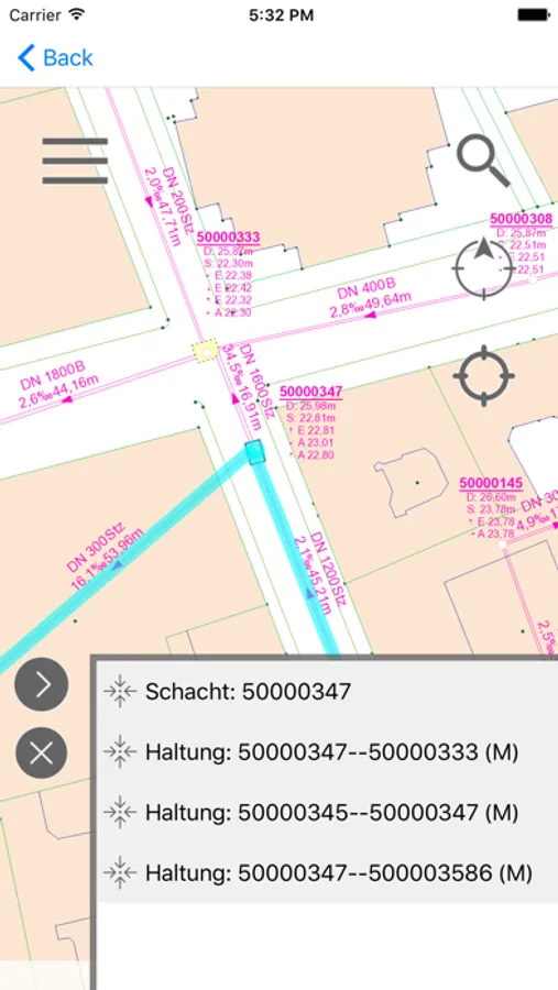 Die vorliegende Version beinhaltet neben der Karte bereits alle grundlegenden Auskunftsfunktionalitäten für die Stammdaten der Schächte und Haltungen. Je nach eingesetzten KANDIS Server Modulen stehen zusätzliche Funktionalitäten bereit, zum Beispiel die Verfügbarkeit beliebig miteinander verknüpfter Dokumente oder das Editieren von Fachdaten. Auch ein Locator zur Kartennavigation ist einbindbar.