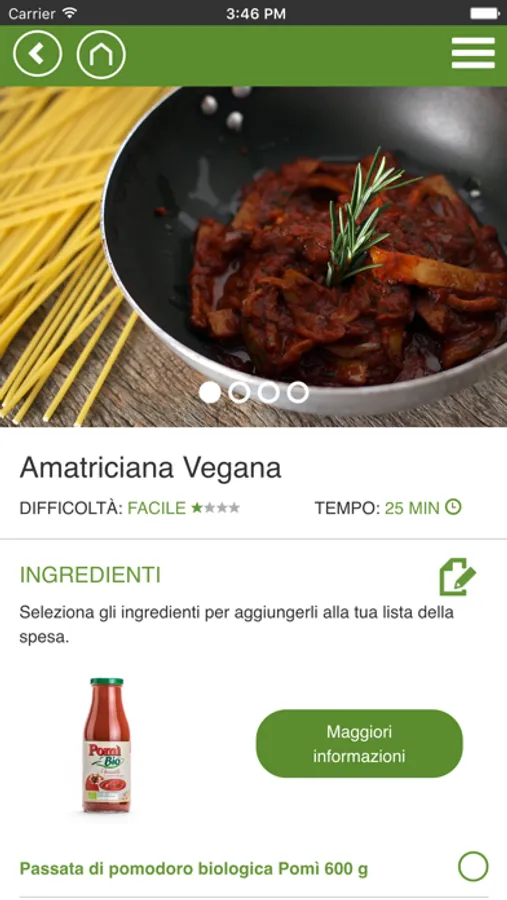 - Your own Pomì Recipe Collection, selecting the list of your favorite dishes.