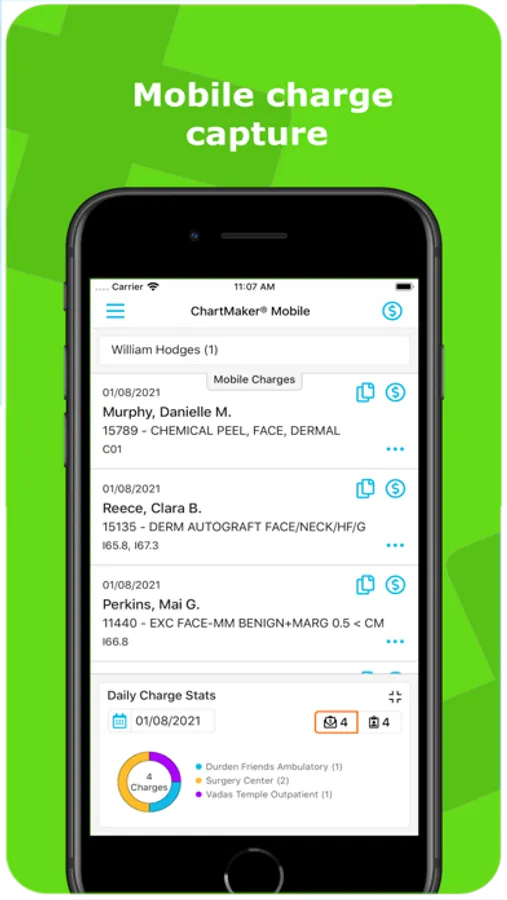 ChartMaker® Mobile is for medical practice providers. It allows the users to access data from their office practice management or EHR system and view it on their mobile devices. Once registered, providers are able to securely enter charges and view their office schedules, patients' data and daily rounds.