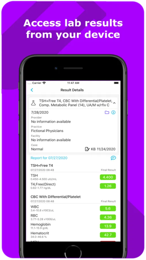 • View patient’s results and notes